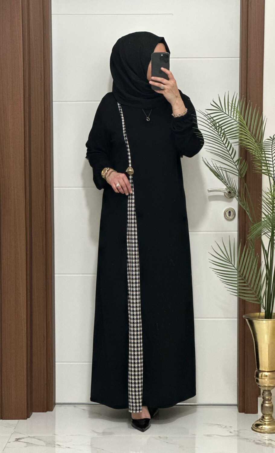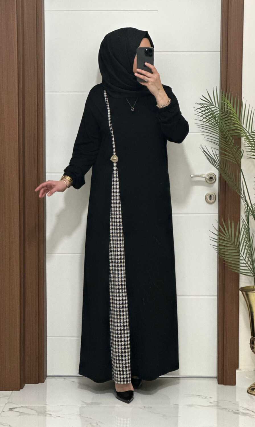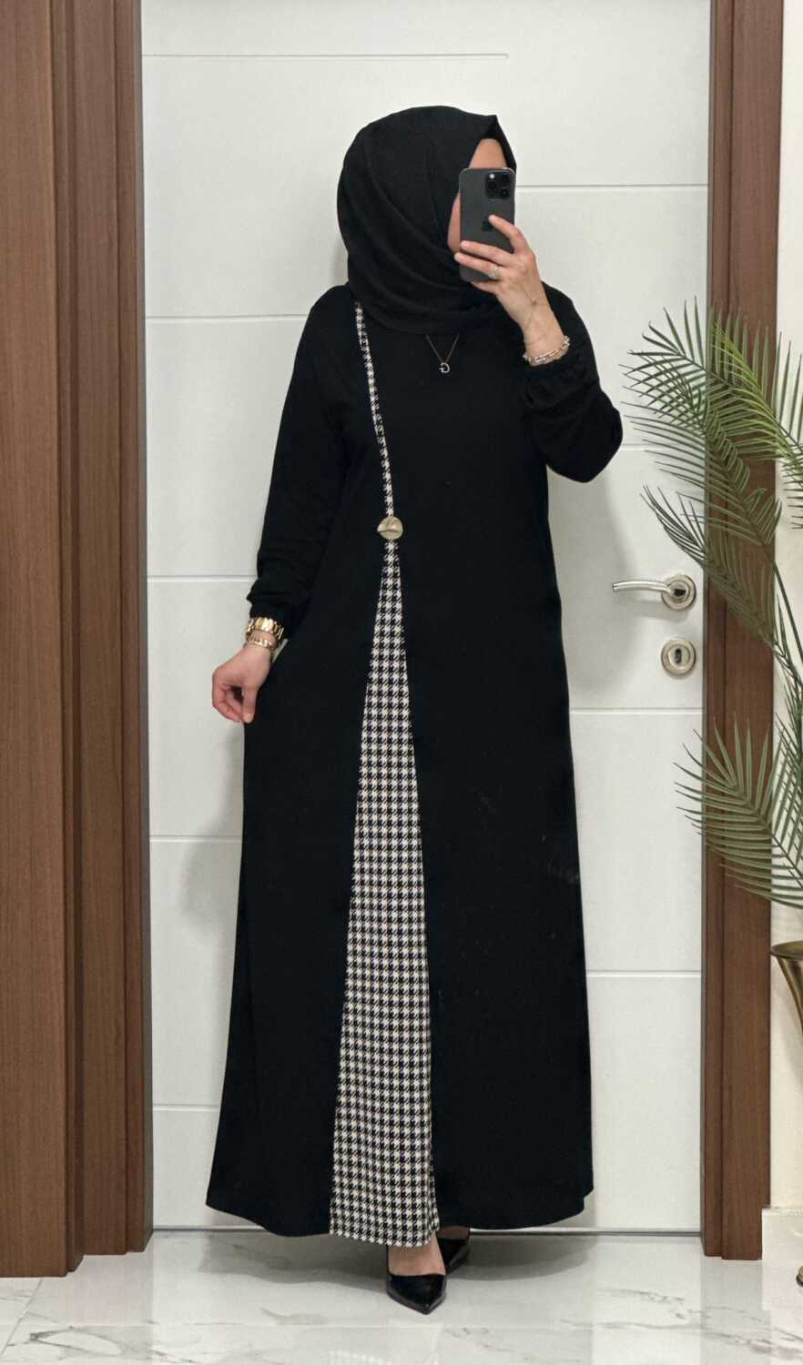 2828 K120 SİYAH-KAZAYAGI BELİ DÜĞMELİ ZERDA ELBİSE