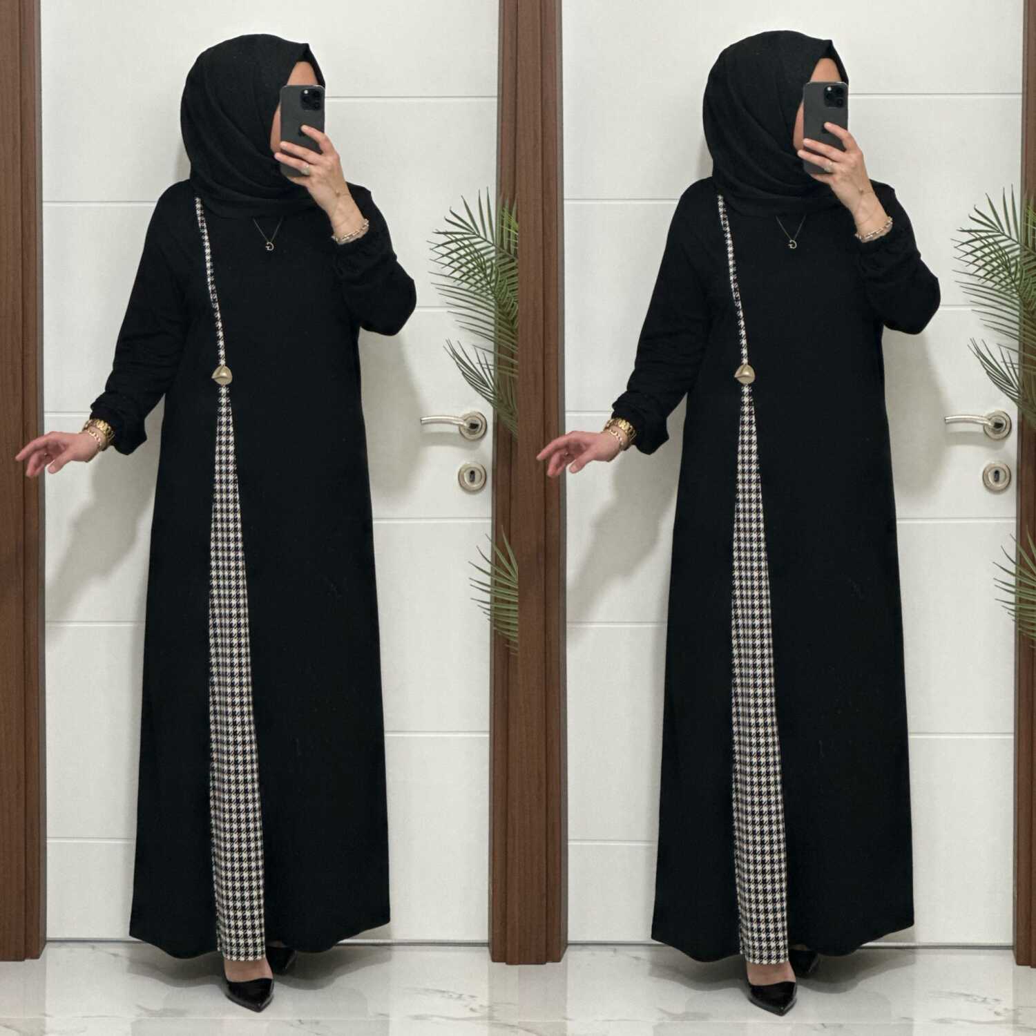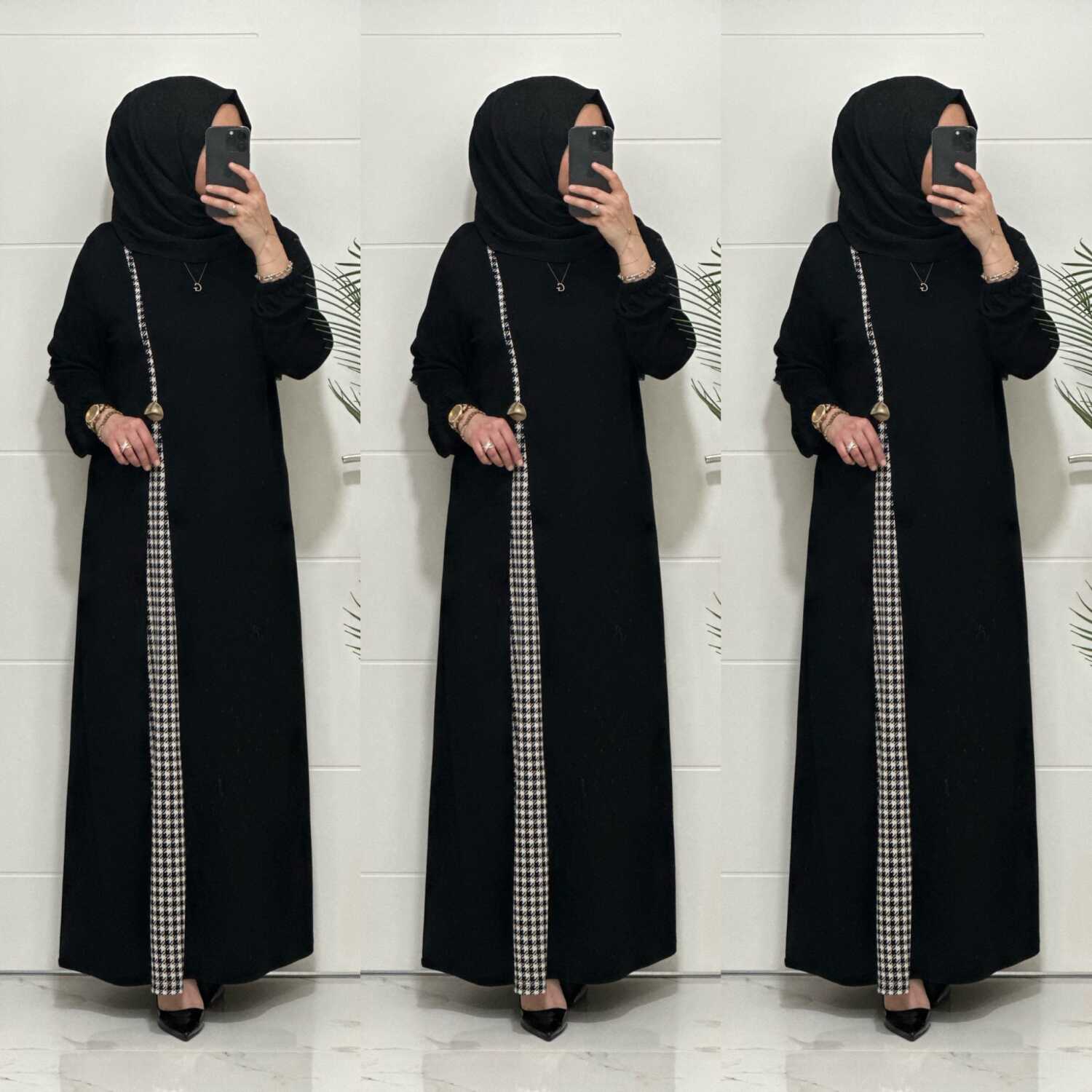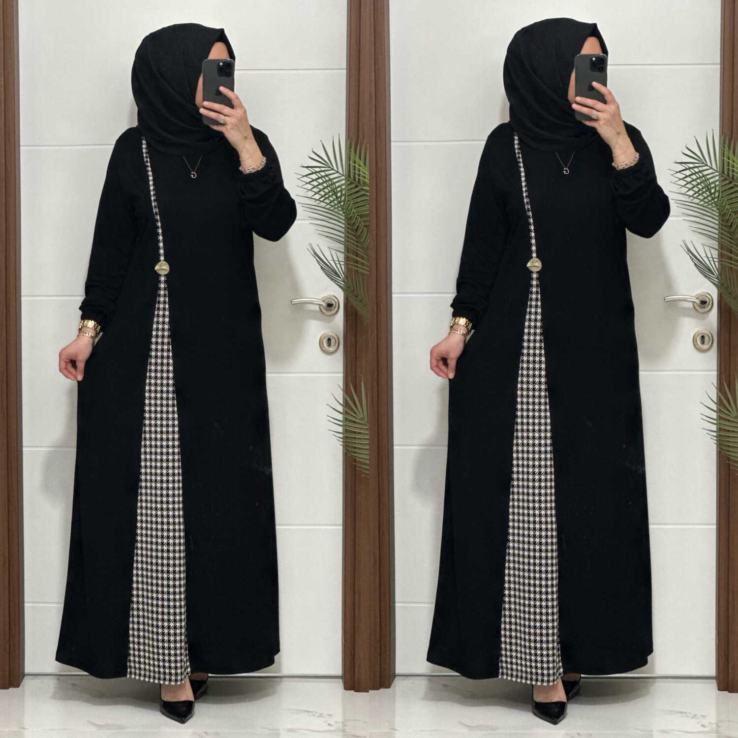 2828 K120 SİYAH-KAZAYAGI BELİ DÜĞMELİ ZERDA ELBİSE