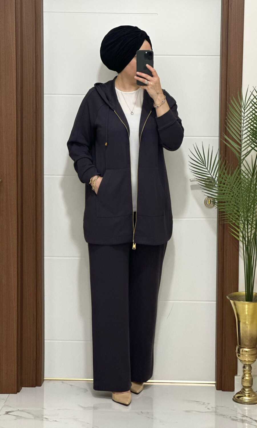 25921 K180 ANTRASİT KANGURU CEPLİ KAPSONLU TAKIM