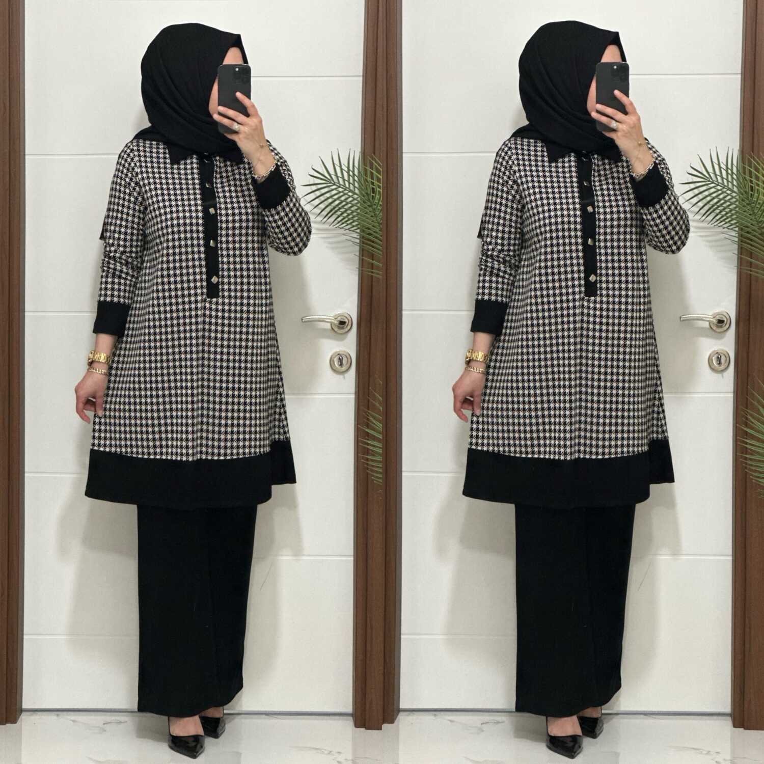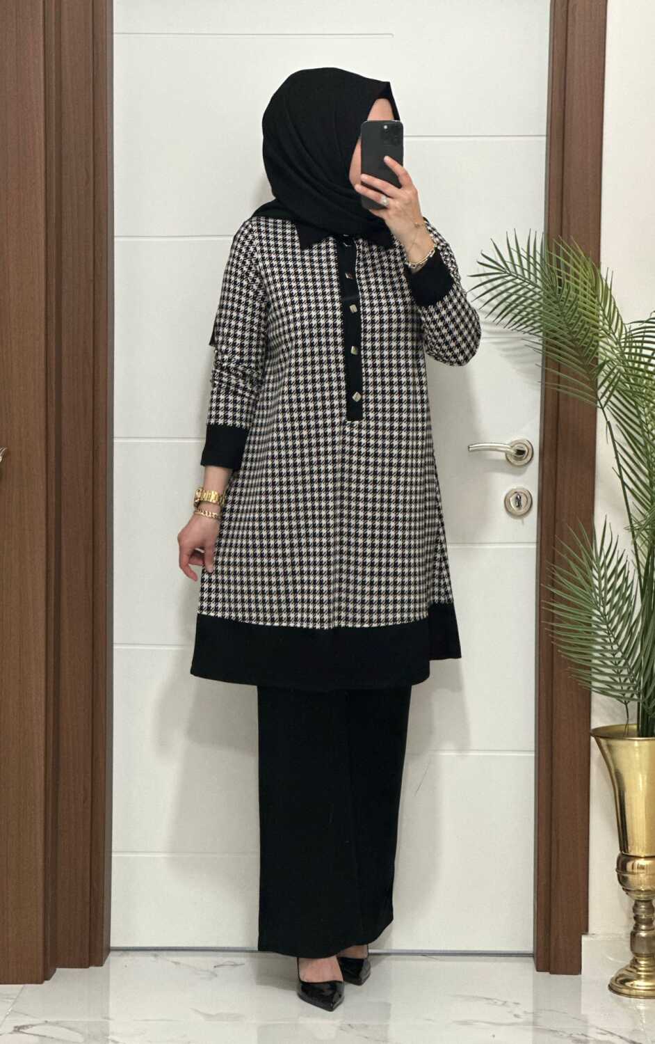 KAZ AYAGI DÜĞMELİ TAKIM Ürün kodu:2612Kumaş: ÖRME KREP KAZ AYAGIBedenler