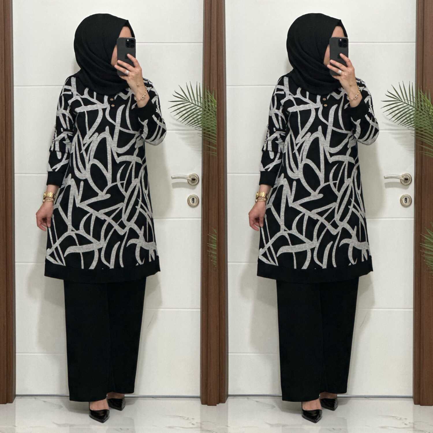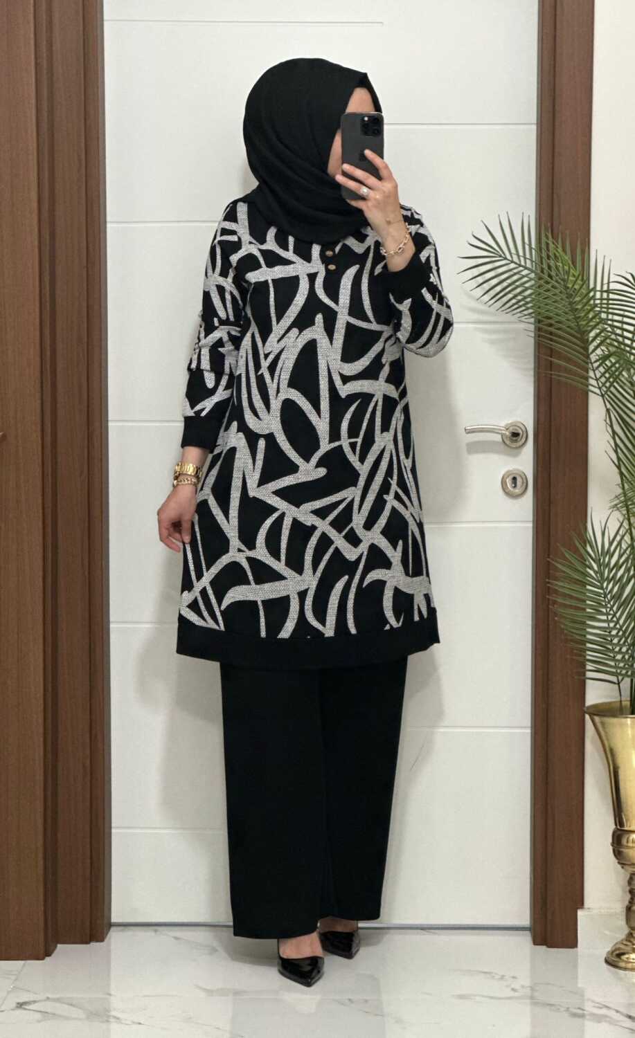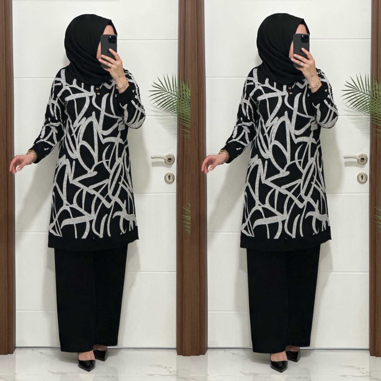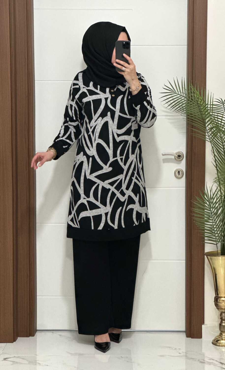 26135 K 130 SİYAH - BEYAZ AYÇA TAKIM