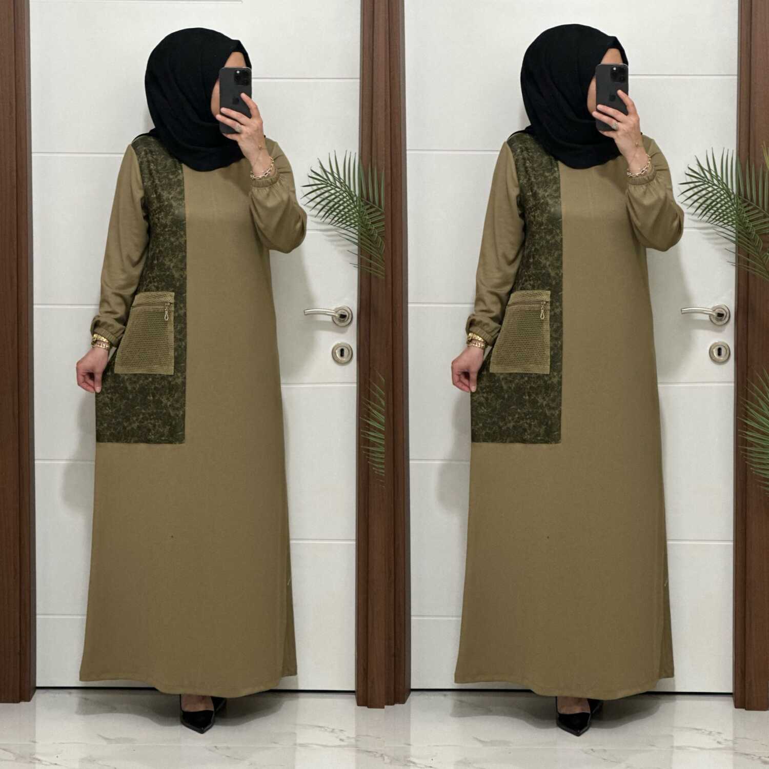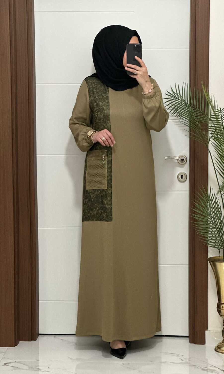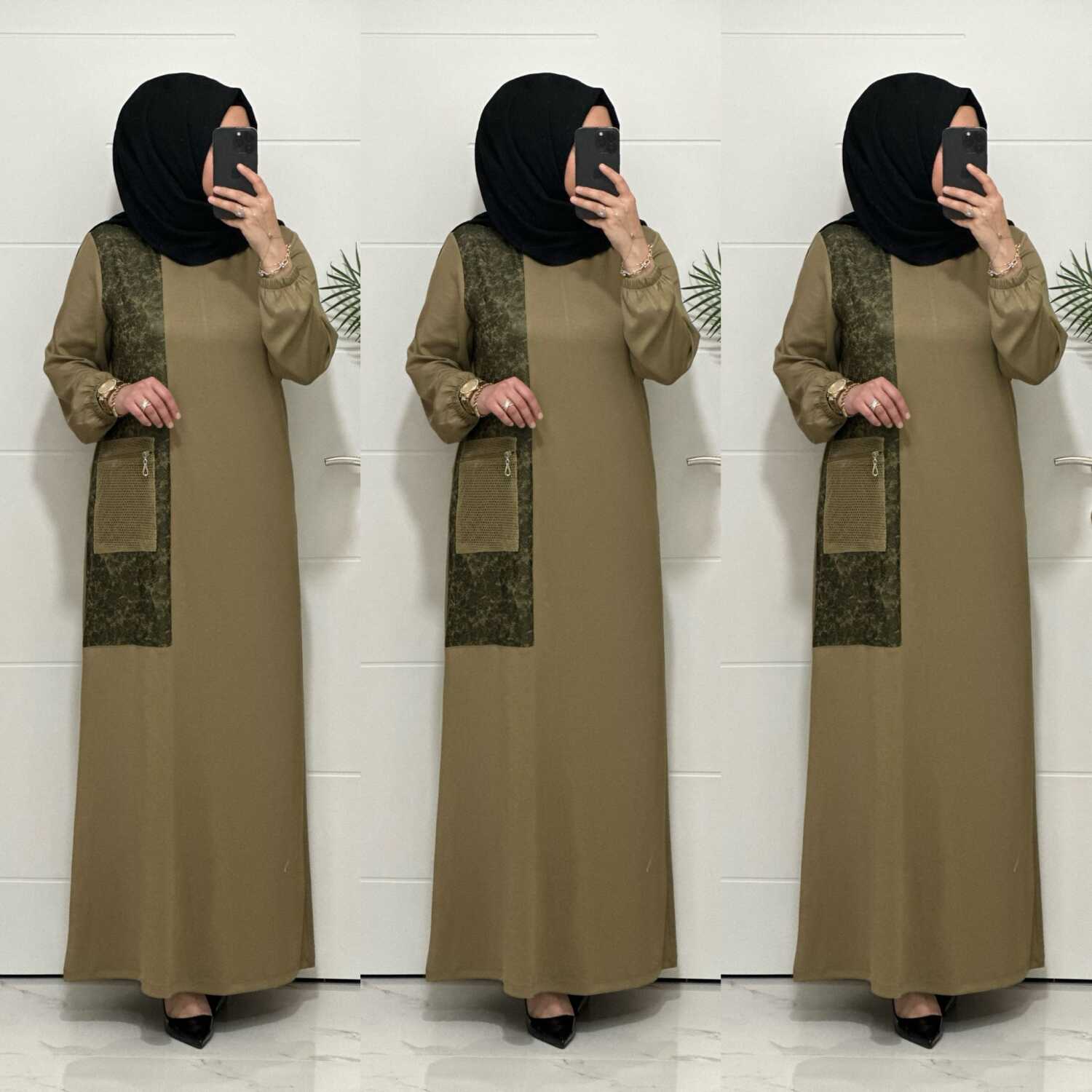 2818 K 160 KAHVERENK YENİ SEZON FİLE CEPLİ OYSHO ELBİSE