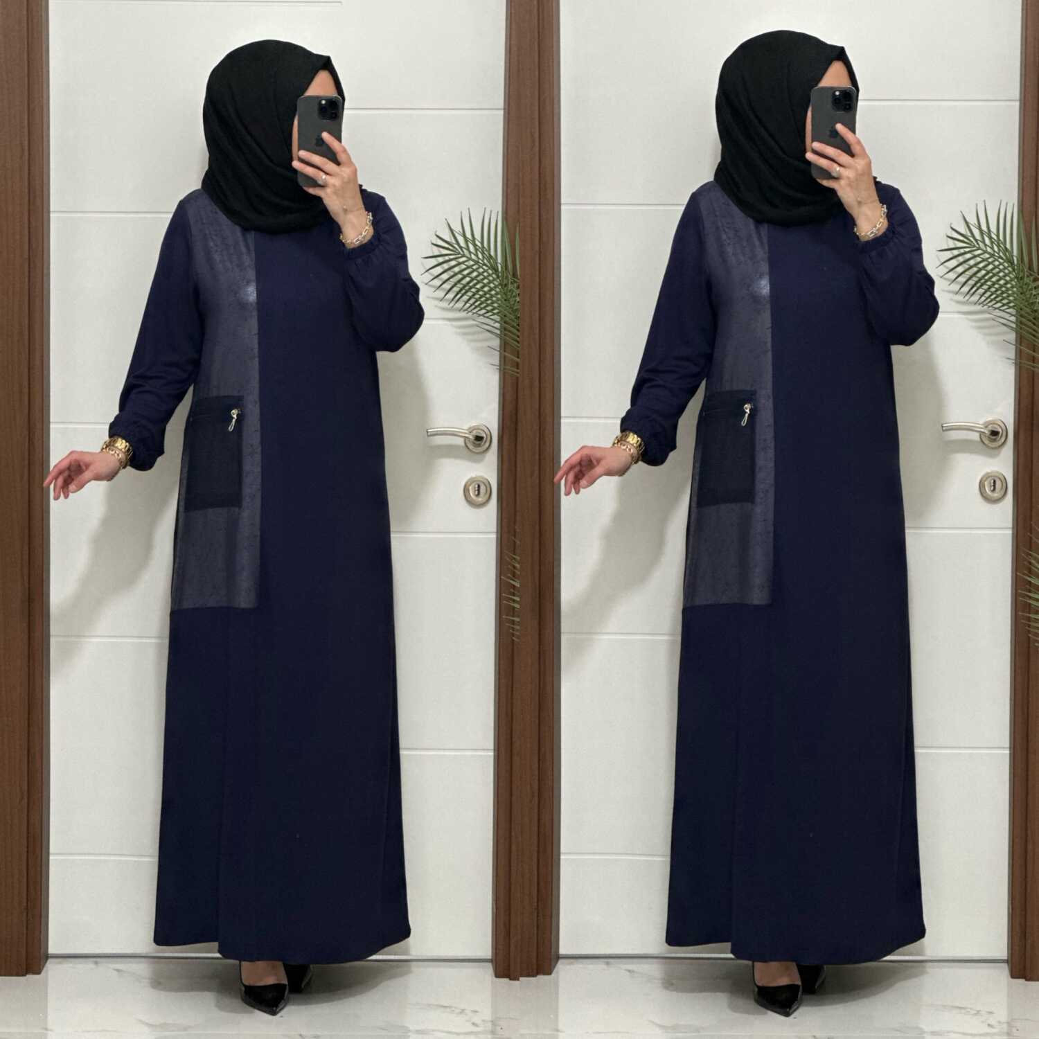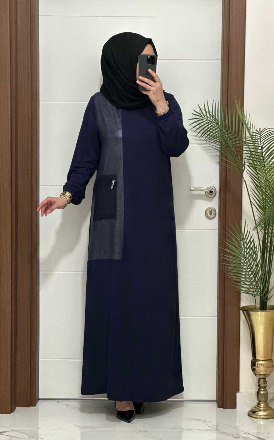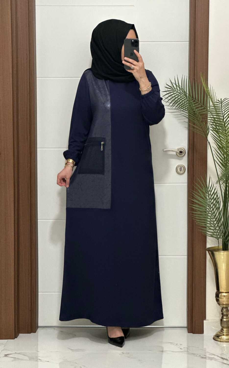 2818 K 160 LACİVERT YENİ SEZON FİLE CEPLİ OYSHO ELBİSE