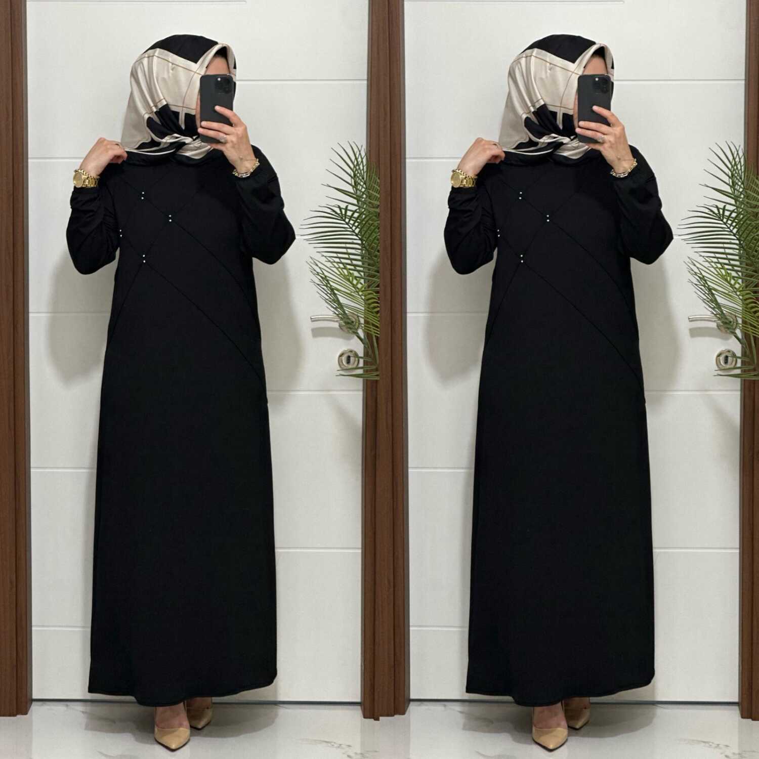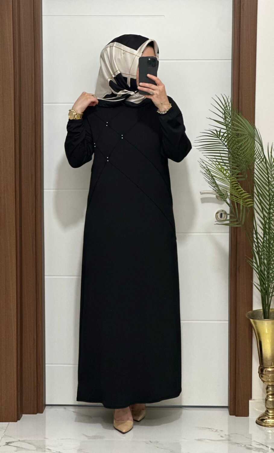 F10 K 80 SİYAH ÇAPRAZ ÇIMALI TAŞLI ELBİSE