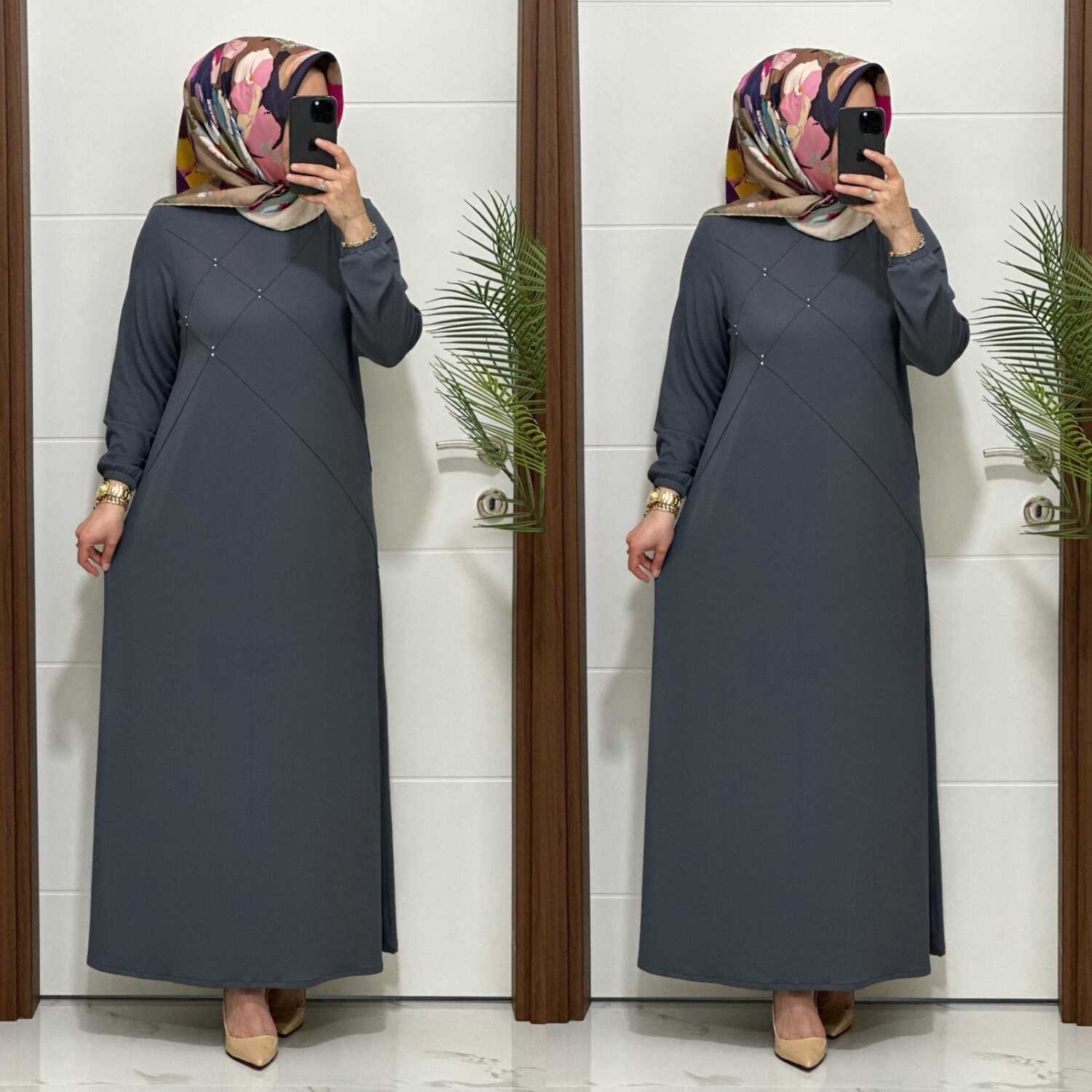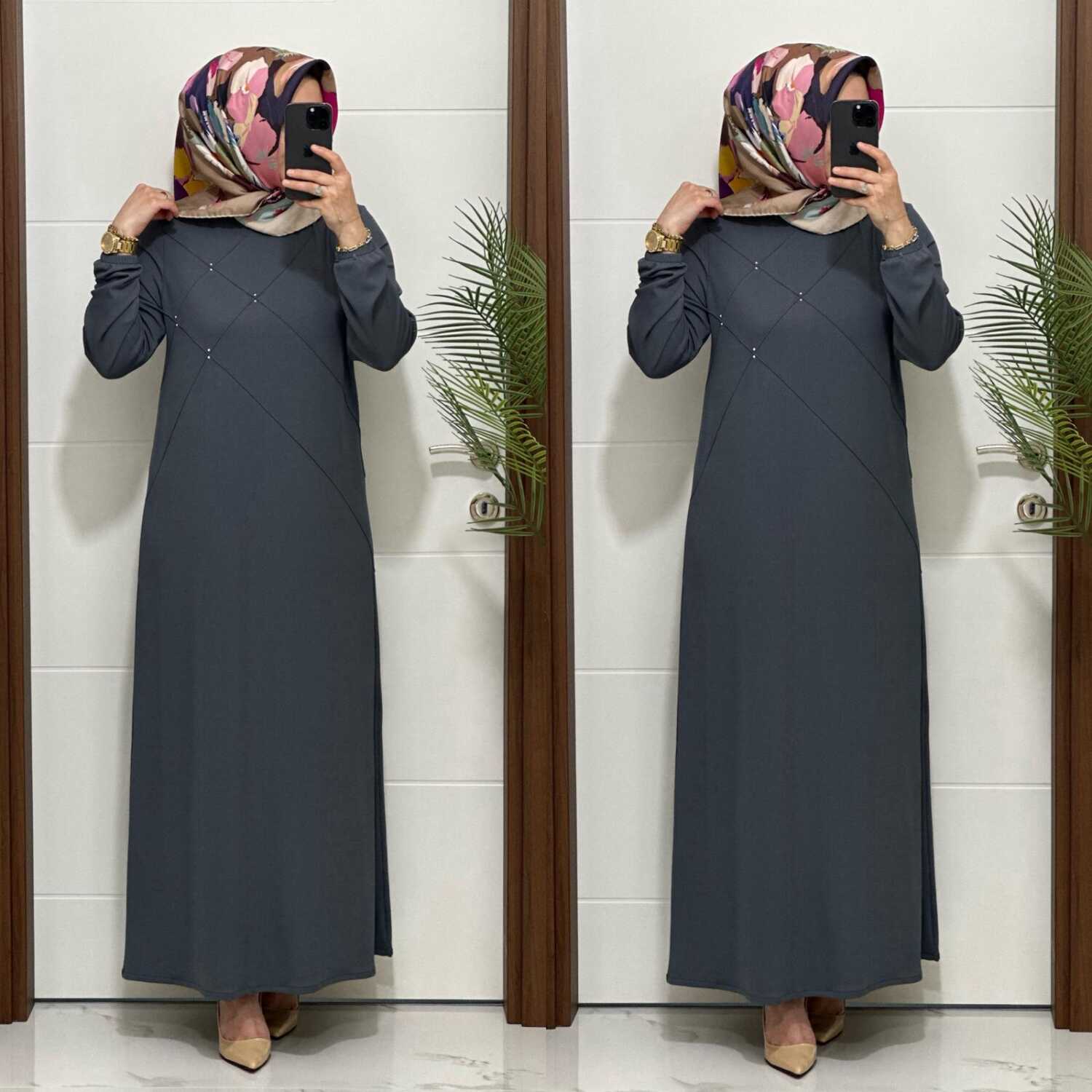 F10 K 80 ANTRASİT ÇAPRAZ ÇIMALI TAŞLI ELBİSE