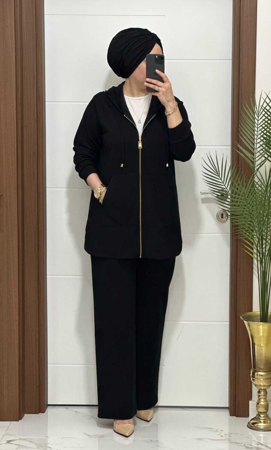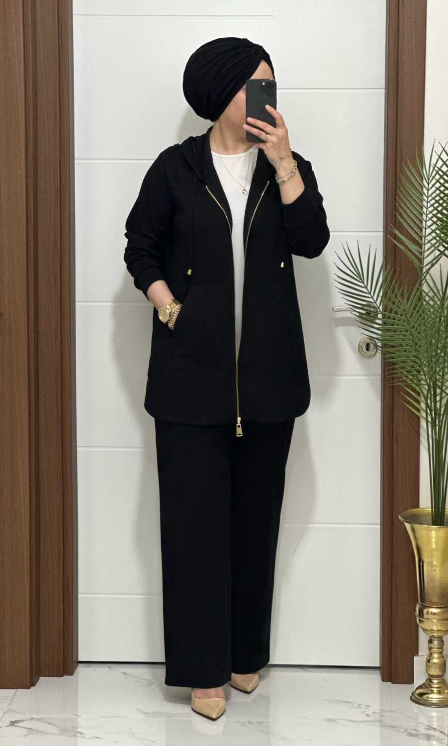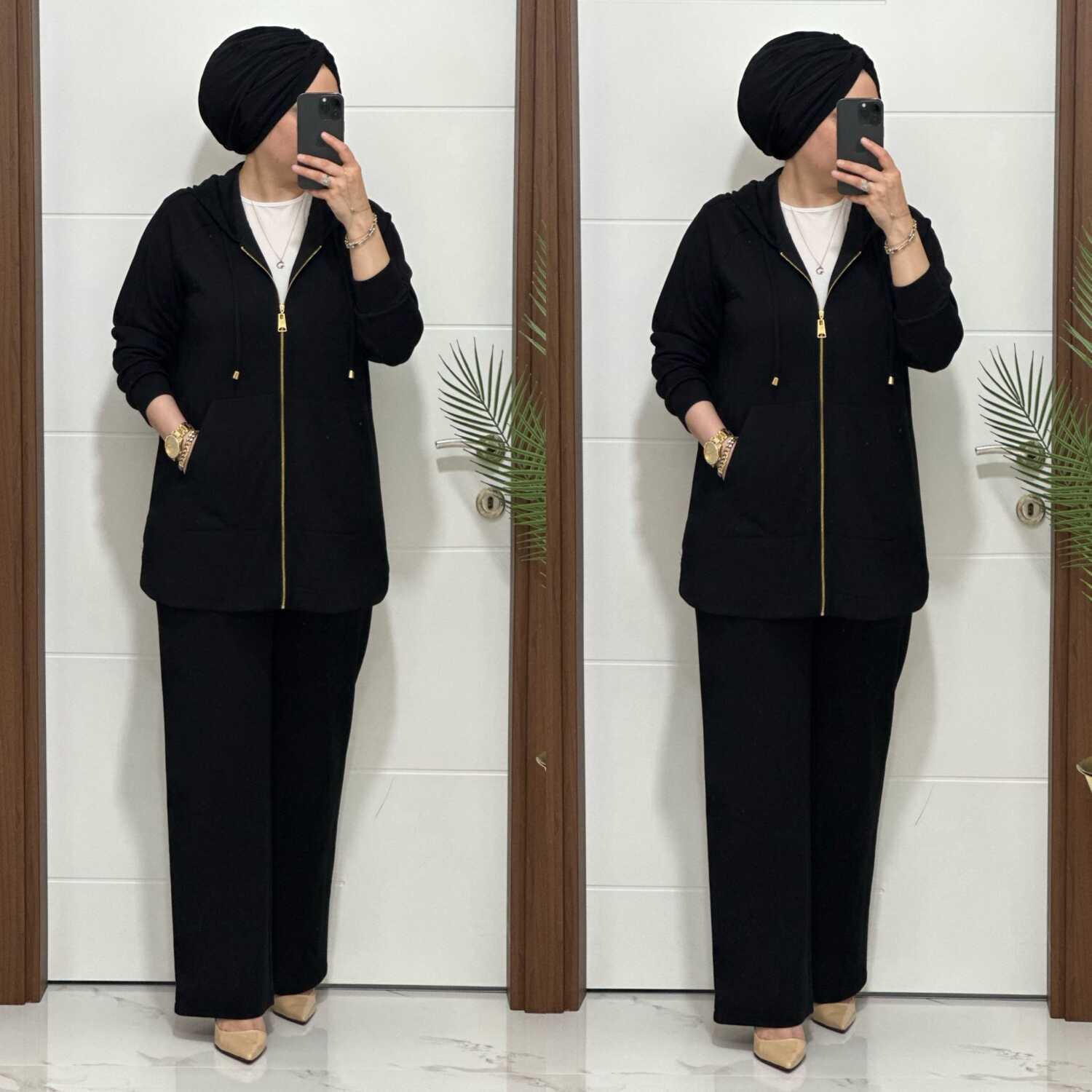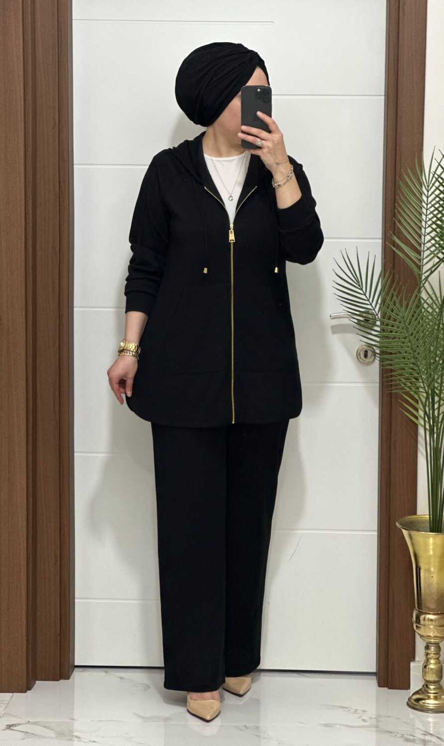 25921 K180 SİYAH KANGURU CEPLİ KAPSONLU TAKIM