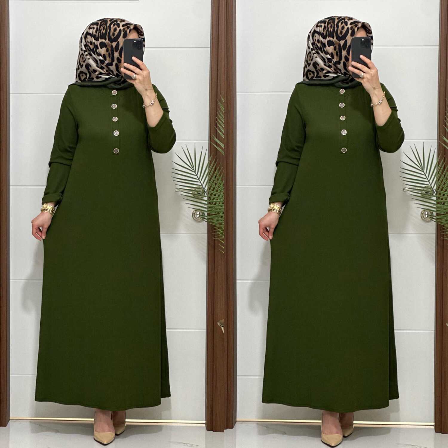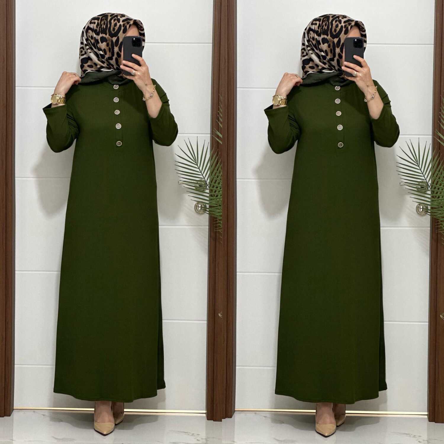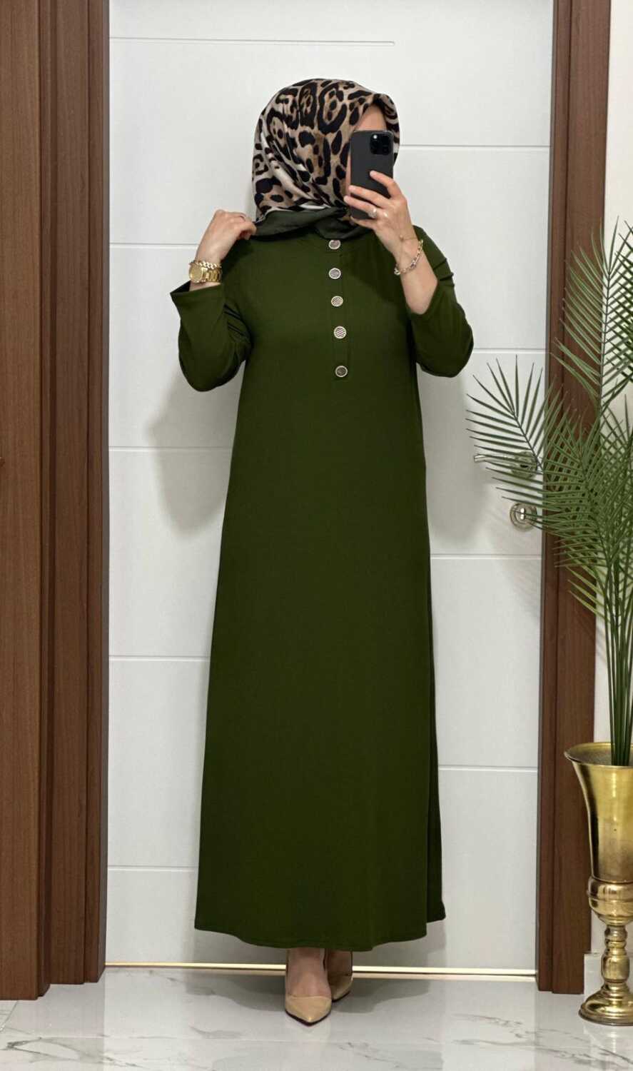 F12 K 80 HAKİ ÖNÜ DÜGMELİ DİLARA ELBİSE