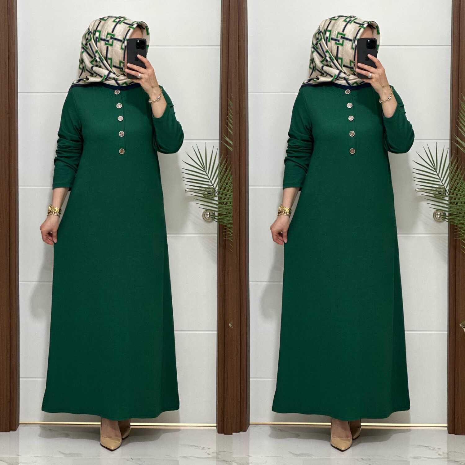 F12 K 80 ZÜMRÜT YESİLİ ÖNÜ DÜGMELİ DİLARA ELBİSE